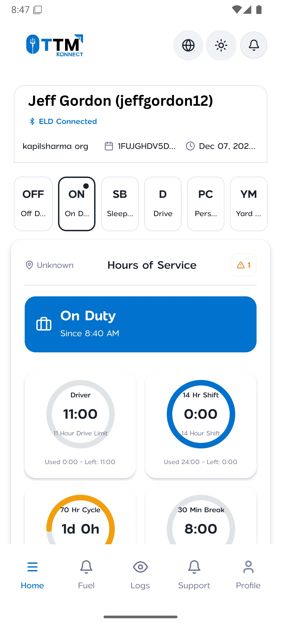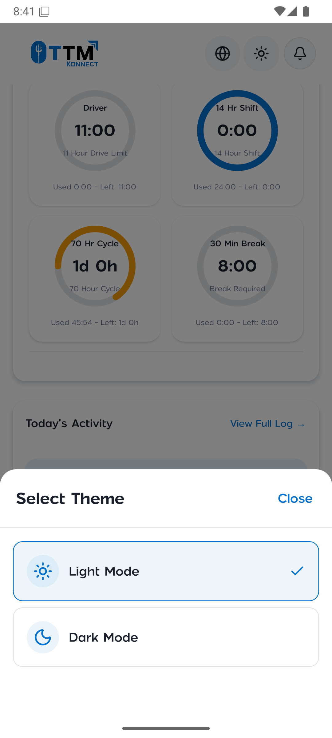 TTMS Connect ELD is a comprehensive electronic logging device solution that helps fleet operators maintain FMCSA compliance. It features real-time vehicle diagnostics, automated HOS tracking, violation alerts, and advanced location tracking—all in one modern mobile app.